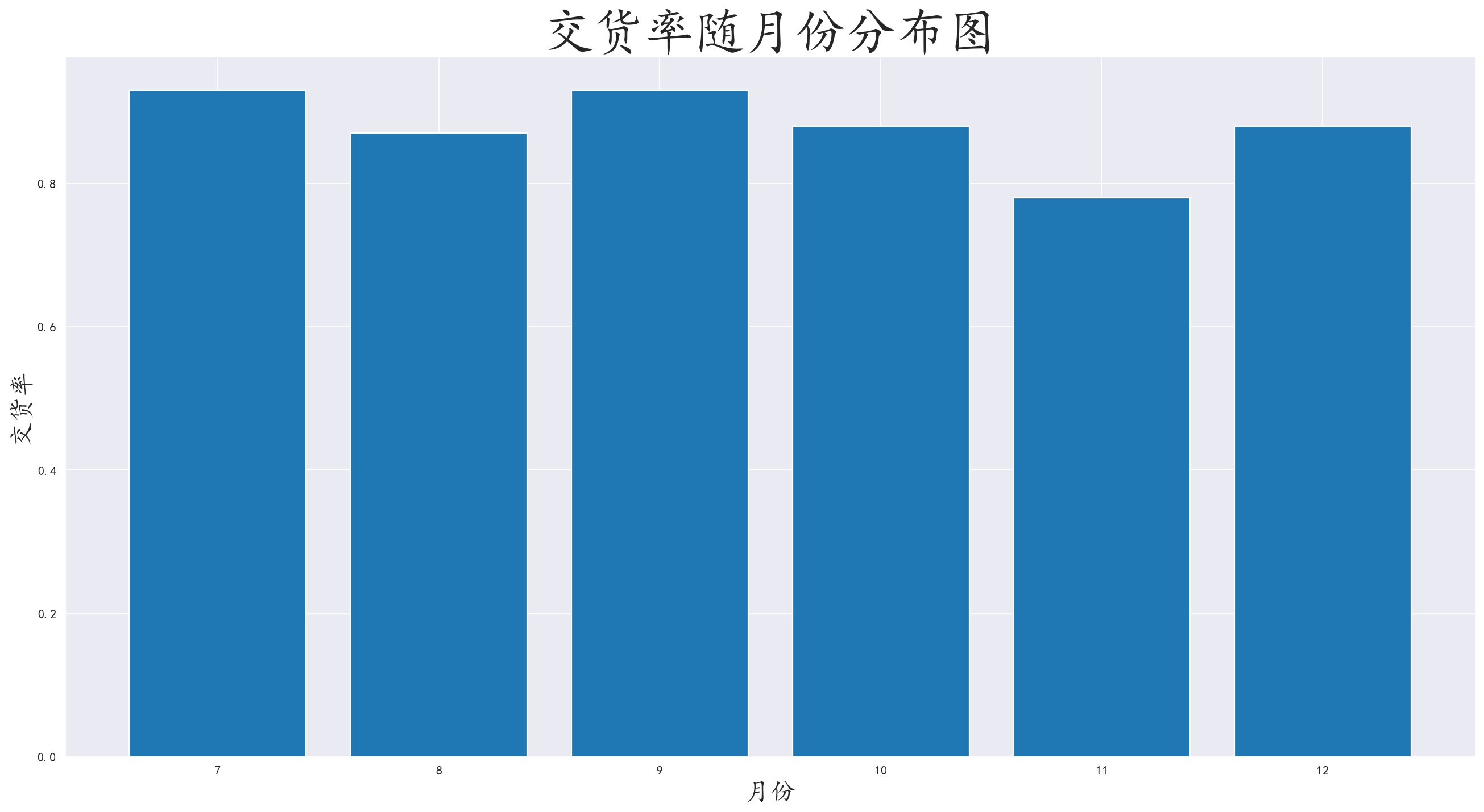 按照月份和交货情况进行分组,计算交货率,并进行可视化