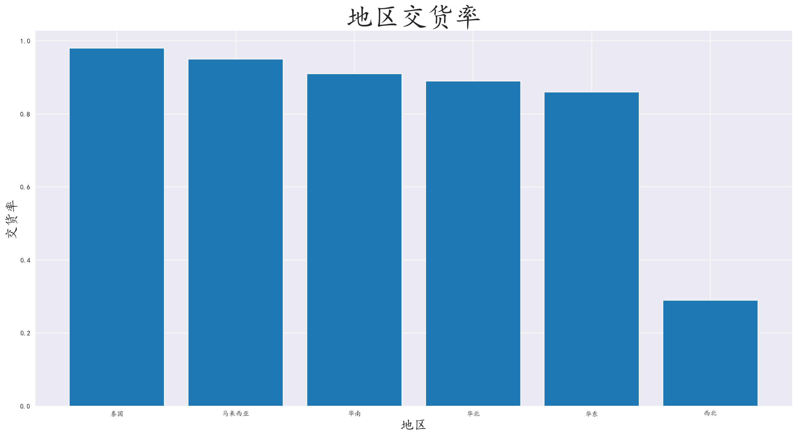 对销售区域和交货情况进行分组,计算交货率,并进行可视化