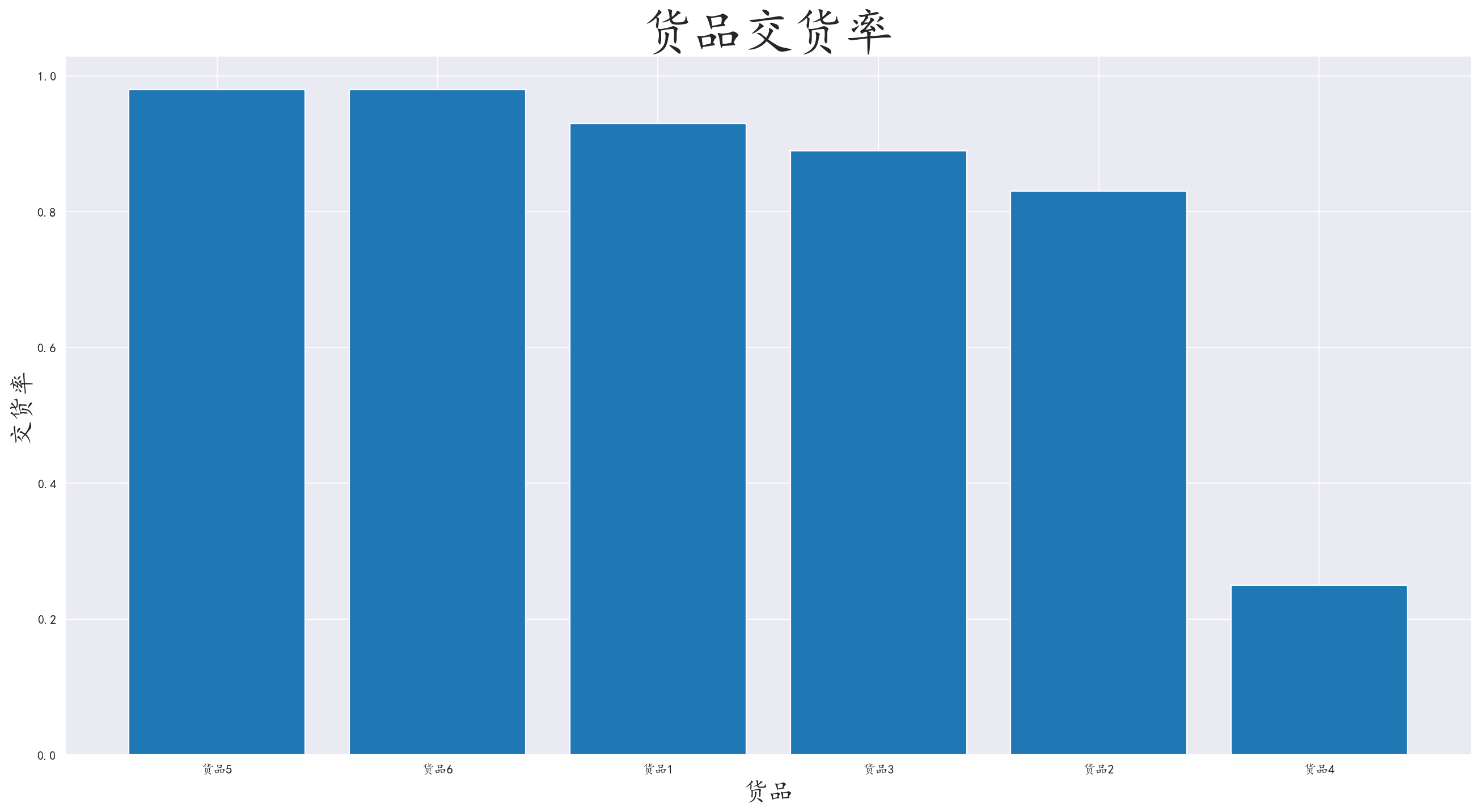 对货品和货品交货状况进行分组,计算交货率后进行可视化