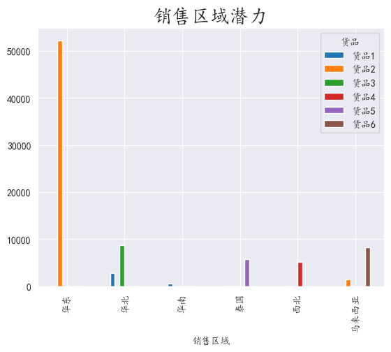 对销售区域,商品进行分组,取出数量进行聚合,可视化出数据