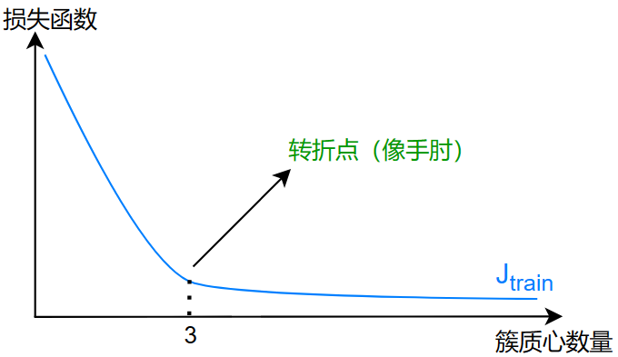 当损失函数出现转折点时,当时的转折点的簇质心数量就是最佳数量