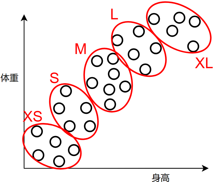 如果你有一家服装店,经过多年积累,你手上有众多客户的身高体重的数据,此时你想要看看,将哪些范围的身高体重设置为衣服的对应尺码:S、M、L 码