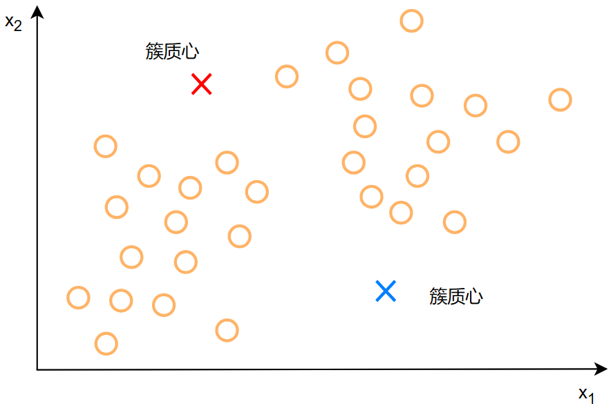 这两个点可以称为:簇质心(cluster centroid)