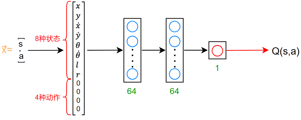 输入为:\((s,a)\) 一共12个输入