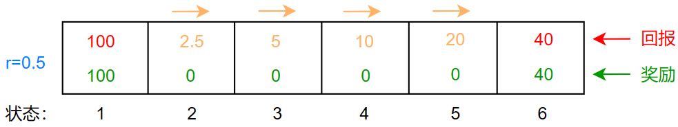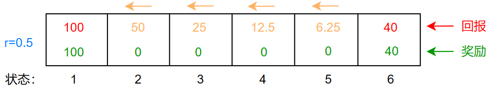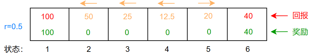 最左边 100 的奖励固然诱人,但是需要走的距离更远,如何表示距离与奖励之间的关系呢?