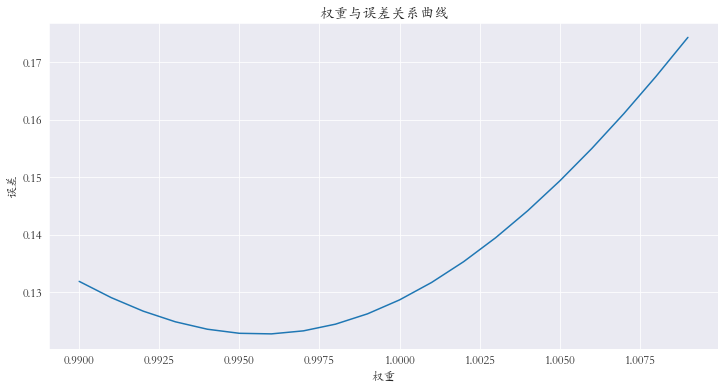 查看权重从0.990到1.010的误差,选择最小值