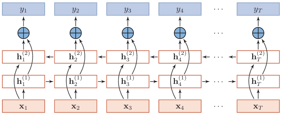 RNN在时间维度上很深,也可以在层数上堆叠: