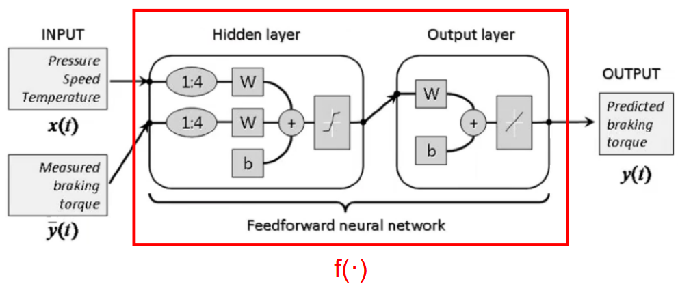 是自回归模型的扩展,每个时刻 \(t\) 都有一个外部输入 \(x\) ,产生一个输出 \(y_t\) ,再通过延时器记录最近几次的外部输入和输出: \[ y_t=f(x_t,x_{t-1},...,x_{t-p}\,;\;y_{t-1},y_{t-2},...,y_{t-q}) \] 其中 \(f(·)\) 表示非线性函数,可以是一个前馈网络,\(p\) 和 \(q\) 为超参数