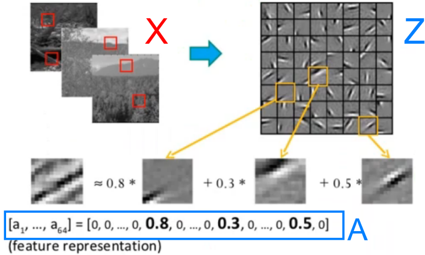 给一组基向量 \(A=[a_1,...,a_M]\) ,将输入样本 \(X\) 表示为这些向量的线性组合